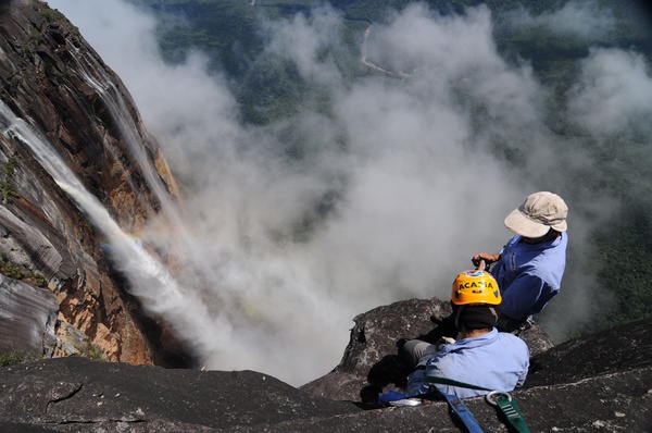 Day 2: Beginning of the rappelling along the left side of Angel Falls to "La Cueva" where we sleep in bivouac mode. (370 m)